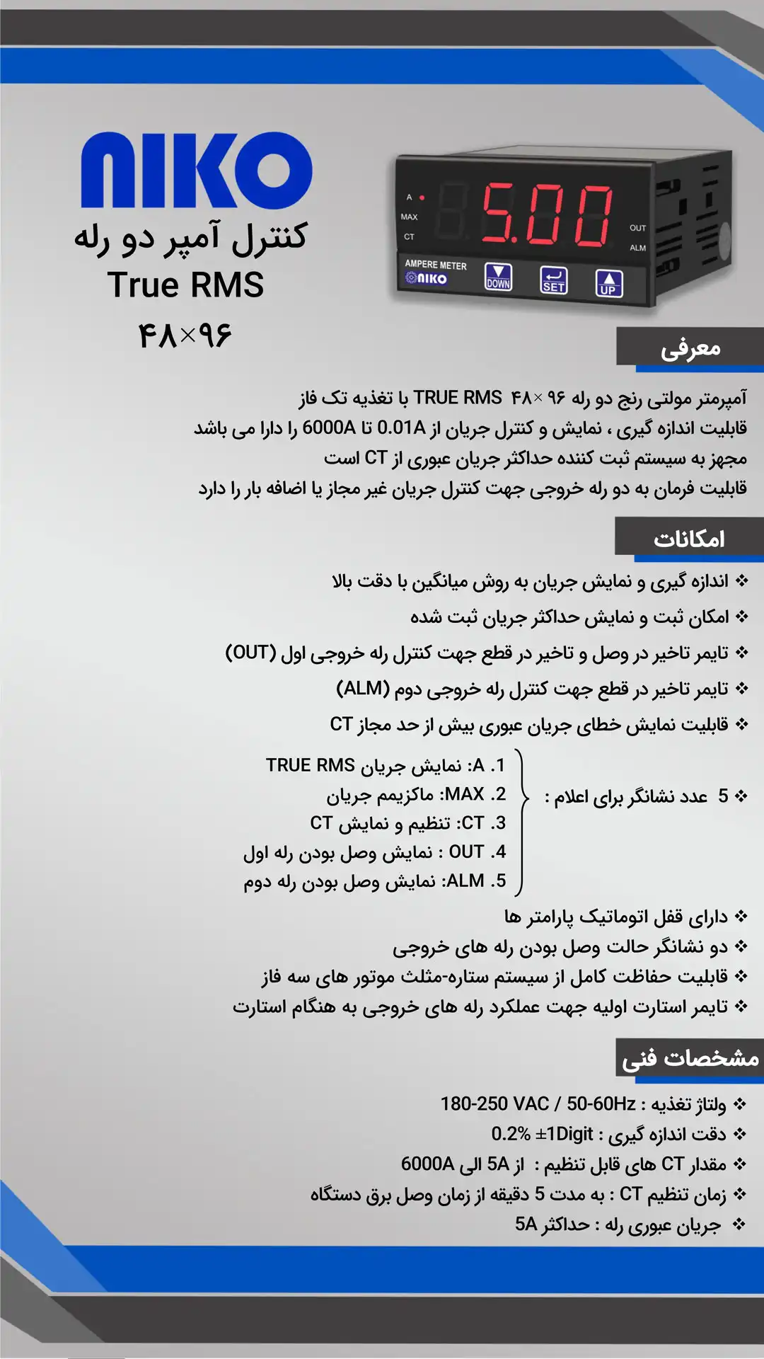 | نام برند دستگاه : نیرو نیک پرداز کهربا تنها تولیدکننده تجهیزات اندازه گیری و نمایشگرهای تابلویی میکروپرسسوری در ایران با نام تجاری niko بخدمت صنعتگران |