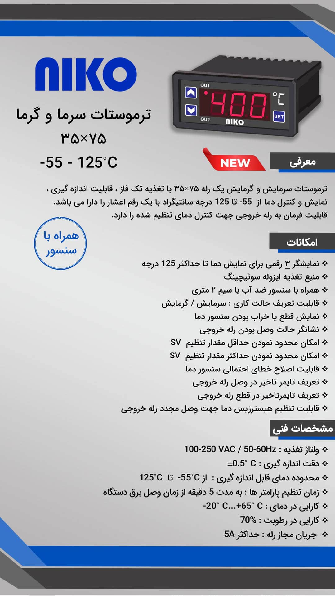 ترموستات سرمایش گرمایش 55- تا 125 درجه