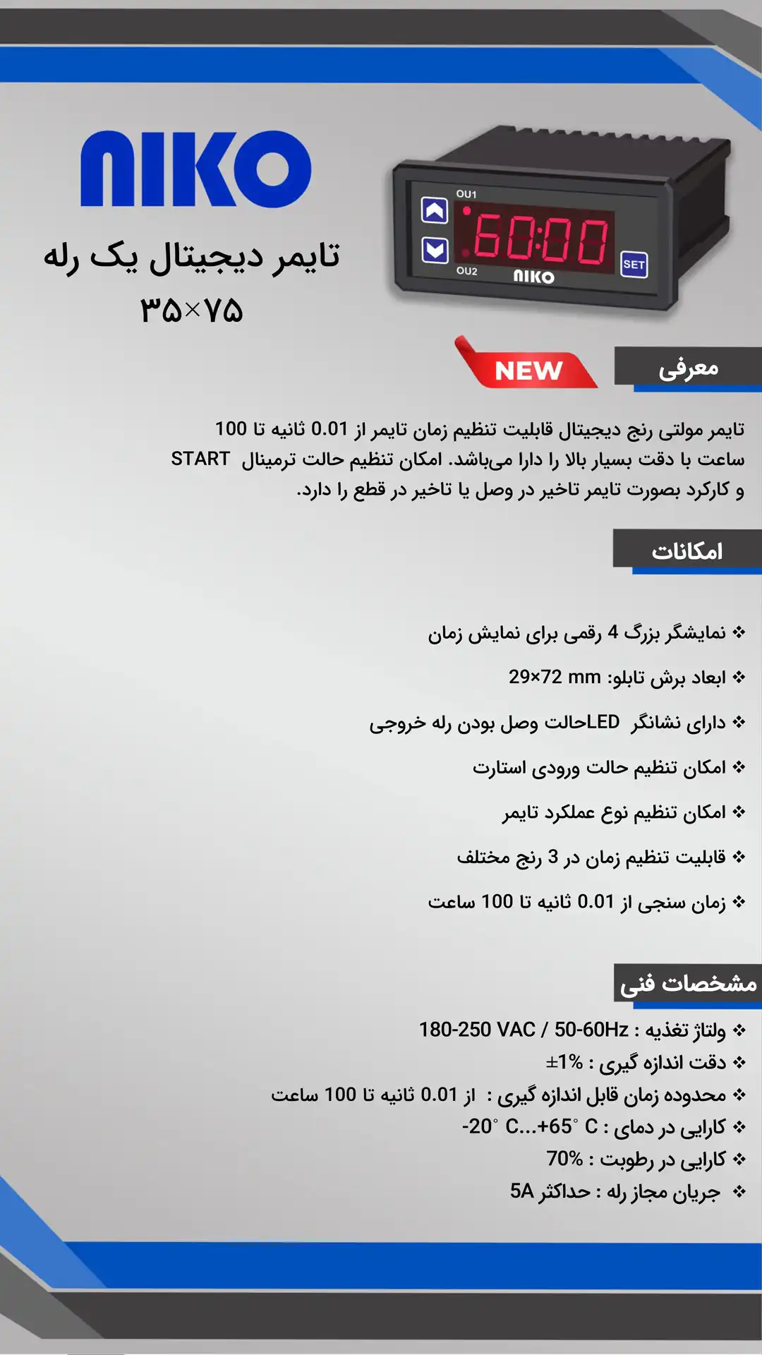 | نام برند دستگاه : نیرو نیک پرداز کهربا تنها تولیدکننده تجهیزات اندازه گیری و نمایشگرهای تابلویی میکروپرسسوری در ایران با نام تجاری niko بخدمت صنعتگران |